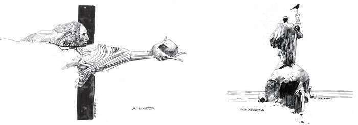 Sergio Toppi nous a quitté en août 2012, nous avons voulu lui rendre un hommage en révélant au public un choix de ses innombrables esquisses et crayonnés et en publiant les eaux-fortes qu’il réalisait en vacances pour son propre plaisir personnel. L’écrivain et poète Jean-Louis Roux éclaire de ses réflexions la démarche du grand artiste disparu.