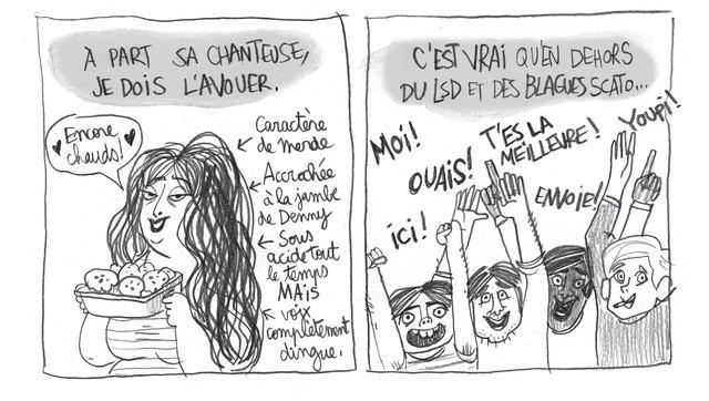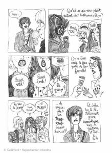 Pour brosser le portrait de la chanteuse, Pénélope Bagieu donne la parole aux personnes qui l’entouraient, ses ennemis comme ses amis dans de petits chapitres très réussis : Philipp son père, Allan son premier amour ou encore Denny, Michelle et John, les membres du groupe. « Plutôt que de chercher à rendre un portrait réaliste et objectif, ce qui m’intéressait depuis le début, c’était de toute façon son rapport à ceux qu’elle a aimé. Alors leur donner la parole à eux était la meilleure façon de comprendre la complexité de ses relations avec le monde. », souligne l’auteure de Cadavre Exquis (Gallimard). Elle ne donne donc à aucun moment la parole à Ellen.