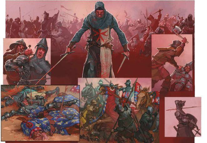 Fondée sur une histoire vraie, le récit historique de Stéphane Piatzszek navigue entre le fantastique, l’onirisme et les combats. Il faut souligner que Juan de la Heredia était vraiment devenu fou après ces drôles de visions. Entre rêve et réalité, le scénariste force encore plus le trait de ce chevalier de l’ordre des Hospitaliers afin de le rendre encore plus théâtral comme un beau personnage de fiction cinématographique. La force de cette histoire où les planches peuvent parfois être muettes, réside dans les très belles planches de Guillermo G. Escalada. Le trait réaliste du dessinateur espagnol lui permet de livrer des pages fortes et oniriques. On est très loin des bandes dessinées liées à la chevalerie.