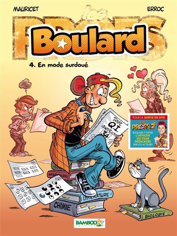 Boulard, le cancre de la série Les profs, a le droit à son propre univers. Voici le 4e recueil de ses gags en un planche, signé Mauricet et Erroc.