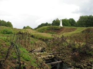 Vue du monument français vu depuis les lignes allemandes sur le sommet de la butte de Vauquois dans la Meuse