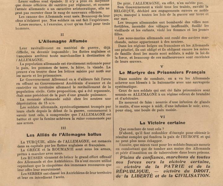 Arrivée à la nuit tombante dans un village absolument rasé, sans traces de maisons autres que des tas de briques. Dans les champs dévastés on a élevé quelques gourbis en paille. C’est dans l’un d’eux que nous nous installons, le commandant, les officiers des 6ème et 7ème et moi. A terre de la poussière de paille… Nous nous gratterons demain ! Assis par terre, à la lueur de deux bougies, nous dînons : d’une sardine, d’un beefsteak grillé sur des branches de pins, de haricots verts arrosés de deux bouteilles de champagne, qui sont notre seule boisson, l’eau de ce pays étant du purin. Nous les vidons une fois de plus à la santé de Christiane. Roederer porte la santé par ces mots : Bibentes morituri te salutant… Peut-être mourront-ils demain dans les tranchées des Hurlus ces bibentes… En tout cas, sur la paille pouilleuse, dans ce gourbi souterrain, ils ont « bon moral ». Christiane je te dédie la bonne humeur que déchaîne chez ces hommes qui vont mourir l’évocation de ta santé et de ta beauté !*