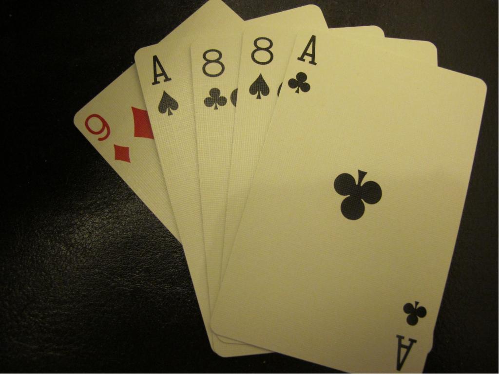 A de pique, A de trèfle, 8 de pique, 8 de trèfle et 9 de carreau : la main probable qu'avait Wild Bill Hickok lorsqu'il a été abattu.