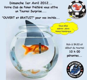 Eh non, ce n’est pas un poisson d’avril… mais bien un tournoi de poker, ouvert et gratuit pour les invités des membres du Poitiers Poker Club.