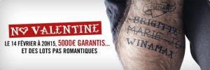 Alors je sais, j’ai déjà évoqué cette question là : le poker est-il un jeu d’hommes ? Je n’ai toujours pas la réponse indéniable. Cela dit, l’image des gros poilus, tatoués à coup de « je t’aime maman » et buveur de bières est aussi tenace. Pour preuve la promo de Winamax pour son tournoi « No Valentine » de ce 14 février, jour de Saint-Valentin, est criant :