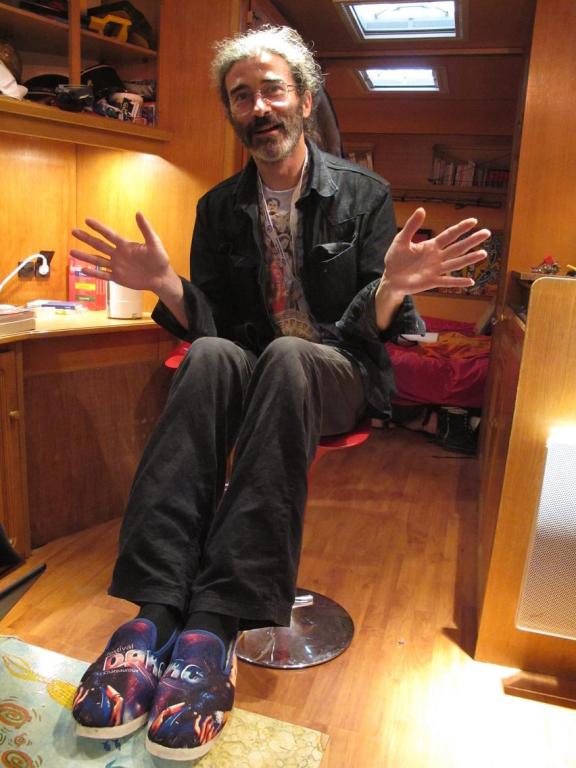 Il signe le succulent « Entretien caravane », morceau de choix du magazine BerrySports. Alors, avec les fameux chaussons qui ont débarqué cette année sur la planète Darc, on ne voit pas pourquoi on ne se paierait pas le luxe d’une « Interview charentaises ». Et tant qu’à faire, on est allé toquer à la porte du propriétaire de la fameuse caravane du festival Darc pour savoir s’il se prêterait de bonne grâce à l’exercice, chapitre 1. Qu’on se le dise, rien ne fait peur à Èric de Bonnarme, ni les chaussons obligatoires pour cette interview qui fleurira sur le blog ; ni de nous prêter sa fameuse caravane.