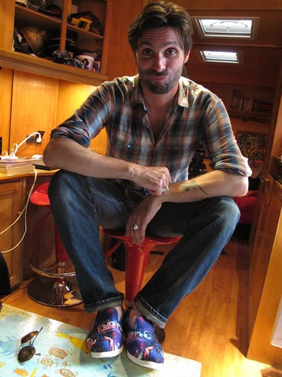 « L’interview charentaises », doit-on vous l’expliquer encore ? Voilà : rendez-vous sur le festival Darc, place Voltaire, on squate la fameuse carriole de la célébrissime « Interview caravane » d’Éric de Bonnarme, on tend gentiment (ou sous la torture, ça dépend) à notre invité la paire de charentaises aux couleurs du festival et on y va pour nos trois questions rituelles. Hier, c’était Louis Soulat, le patron du Samu de l’Indre, bénévole à la plonge dans les cuisines du festival Darc. Ce samedi soir, pendant que, sur scène, Les Rois de la Suède blaguaient sur le fameux « canal de Suède », c’est Johan Ledoux, du groupe Blankass, qui nous a fait une très jolie grimace, rien que pour aller pile-poil avec les chaussons. Classe !