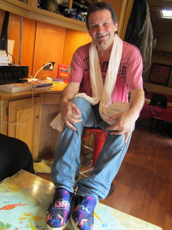 C’est la der ! On avait évidemment prévu de conclure l’Interview charentaises avec Éric Bellet, le directeur du stage-festival Darc. Comme Éric de Bonnarme, Louis Soulat, Johan Ledoux, Ghislaine Sanguin, Éric Hervouet et Jean-François Piaulet passés avant lui dans la caravane, le chef d’orchestre du stage-festival Darc s’est prêté de bonne grâce à l’entretien. Avec, aux pieds, ces charentaises qui crachouillent les couleurs de Darc 2011 car, rappelons-le, pas d’Interview charentaises sans ces désormais célèbres chaussons nés à Vatan chez Les Pantoufles du Berry. L’exercice librement inspiré de l’incomparable Interview caravane d’Éric de Bonnarme dans BerrySports avait encore lieu aujourd’hui dans la carriole de l’auteur un poil hirsute de cette internaute « cariole » qui trimbale des tonnes de rencontres, comme celle avec Aissate lors de Darc au pays à Lurais.