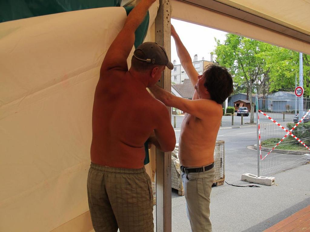 C’est déjà parti, cette semaine, du côté du site de Belle-Isle, à Châteauroux où les Chapiteaux de Paris montent les structures qui accueilleront les quelque 650 stagiaires attendus du 12 au 24 août pour le 37e stage-festival international de danse, Darc. Scoop : même le directeur du stage-festival, Eric Bellet, mouille le maillot, la preuve, en image… il l’a même enlevé ce maillot, en ce début d’après-midi ! Ce qu’on ne vous dit pas (chut !) c’est qu’il l’a fait juste pour la photo.
