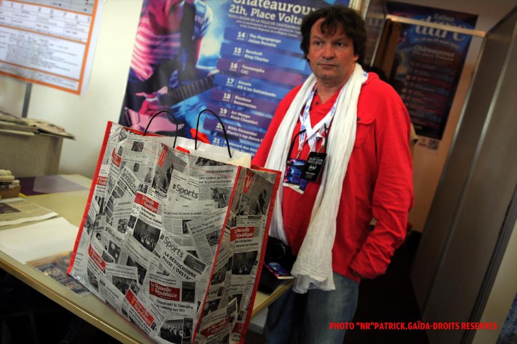 L’objet du jour, s’il doit y en avoir un, c’est ce sac multifonction. Flanqué de unes historiques de la NR, il accompagne efficacement Eric Bellet dans ses déplacements…