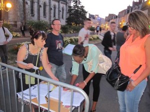 Ils sont là chaque soir avant les concerts, place Voltaire, à faire signer leur pétition. Les membres de ce collectif de soutien sensibilisent les spectateurs à la cause de deux familles roumaines, menacées d’expulsion, qui vivent dans les sous-sols de l’ancienne clinique Montaigne. Également disponible sur Internet, la pétition a déjà recueilli près de 900 signatures.