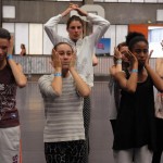 Les staggaires de l’atelier de comédie musicale ont pris pour habitude de se détendre les zygomatiques avant leurs cours.