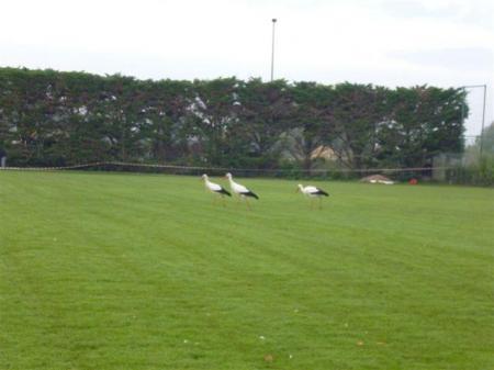 Voilà plusieurs jours que trois cigognes se promènent, chaque jour dès l’aube, sur les terrains annexes du complexe sportif de la Vallée du Cher. Elles doivent sans doute y trouver les insectes et les vers de terre dont elles sont friandes. S’agit-il d’un heureux présage pour le Tours FC avant le prochain mercato, alors que le club a besoin de renfort pour éviter de patiner dans le « ventre mou » du championnat de Ligue 2 ? L’histoire ne dit pas si les échassiers aiment le football…