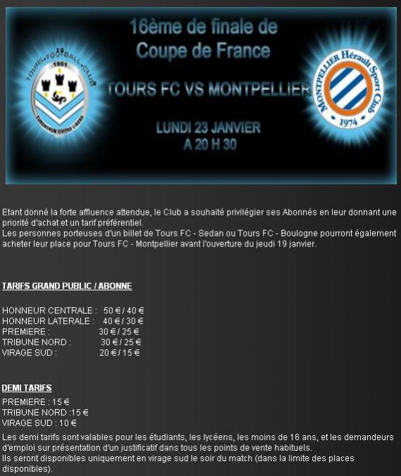 PRIX DES PLACES TOURS FC – MONTPELLIER