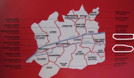 Alors que la (possible) loi sur le non cumul des mandats électifs agite déjà les caciques socialistes, la droite tourangelle vient d’hériter à son insu d’un siège supplémentaire. En page 2 du rapport d’activité 2011 de Tour(s)plus, Jean-Gérard Paumier apparait deux fois sur la carte de l’agglo : comme maire de Saint-Avertin – ce qu’il est effectivement depuis 2001 – et comme maire de… La Riche à la place d’Alain Michel (PS).