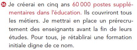 Il prévoyait déjà, en cas de victoire à la présidentielle, la création d’écoles supérieures du professorat et de l’éducation (Espé), le rétablissement d’une véritable année de stage et le dispositif « emplois d’avenir » pour l’éducation nationale.