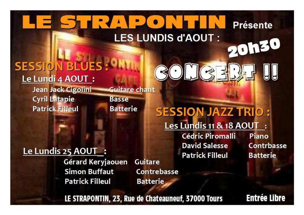 Pour faire partie des soirées de Patrick au Strapontin, un critère indispensable, avoir le swing ! Ses potes musiciens le savent bien, qui remballent leurs envies de rythmes impairs et de jazz barré pour avoir le plaisir de jouer, un lundi de temps en temps, avec ce gars franc et généreux.