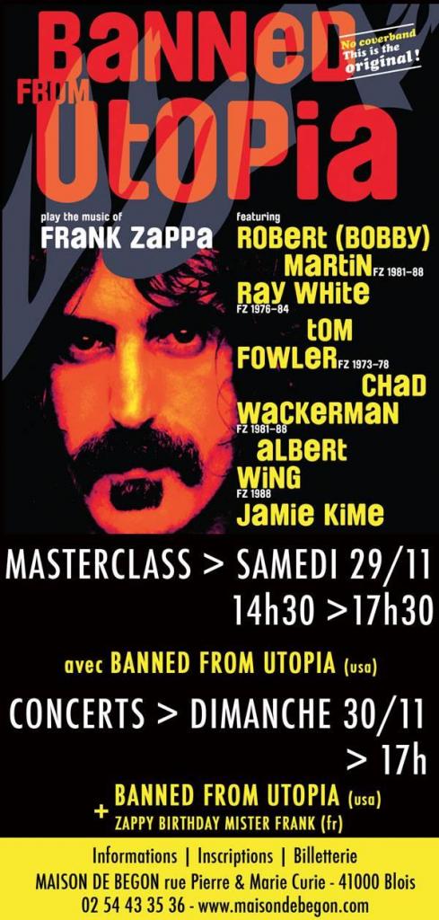 C’est avec les musiciens de Banned from utopia, anciens musiciens de Frank Zappa (et pour l’un d’entre eux de son fils Dweezil) que va se dérouler ce week-end exceptionnel, les 29 et 30 novembre 2014.