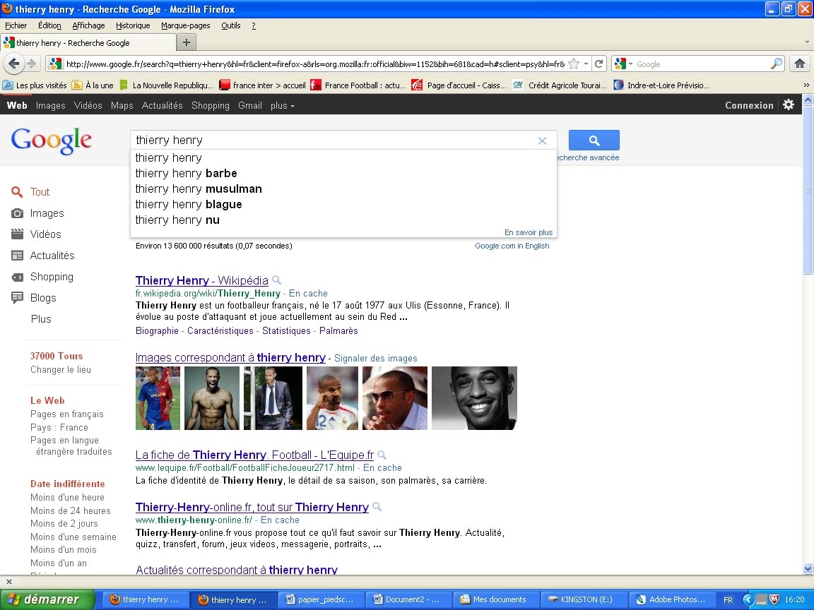 Laurent Blanc : fait divers aussi tenace que celui attribué à son adjoint à la tête de l’équipe de France. Dans la barre de recherches, Lolo n’est associé ni à « sélectionneur » ni à « but en or » ; non, le mot « raciste » arrive tout de suite… Quand on sait que c’est aussi un site Internet d’info (Mediapart) qui a sorti l’affaire des quotas, on ne serait pas surpris d’apprendre que le sélectionneur des Bleus a bazardé sa Freebox…