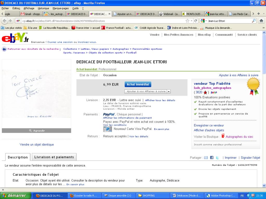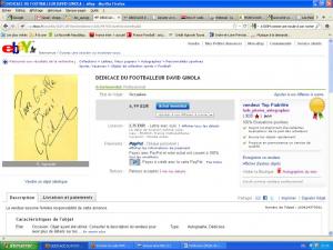 Certains en ont fait leur fonds de commerce. C’est pourquoi on retrouve ici en vente des dédicaces… personnalisées. Une certaine « Gisèle » – qui a réussi à obtenir les signatures de l’ancien gardien de but international Jean-Luc Ettori et du « Magnifico » David Ginola – a semble-t-il légué ou vendu ses « trophées » à un pro.