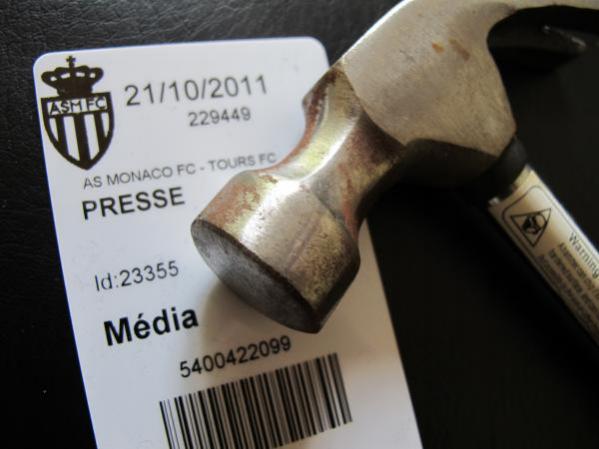 Après cette bonne vieille purge, comme l’écrira dans son papier Fred Launay, descente aux interviews. La pétillante Sonia Diaz, ex-Espagnole de service dans l’Equipe du Dimanche, est directrice de la communication de l’ASM (et pas du SM, bande de lubriques). Personne ne sert trop la soupe, à part le président monégasque Étienne Franzi qui ne sait pas trop quoi répondre à propos de la banderole et des chants contre la direction du club. La Franzi-panne, sans doute, celle qu’on trouve dans la galette du prince. Le boulot bouclé, pour les deux envoyés de La Nouvelle République, et nous quittons enfin tous les quatre le stade, non sans que Michaël l’internaute ne se soit prêté au jeu de la séance photo sur la pe-lose monégasque.