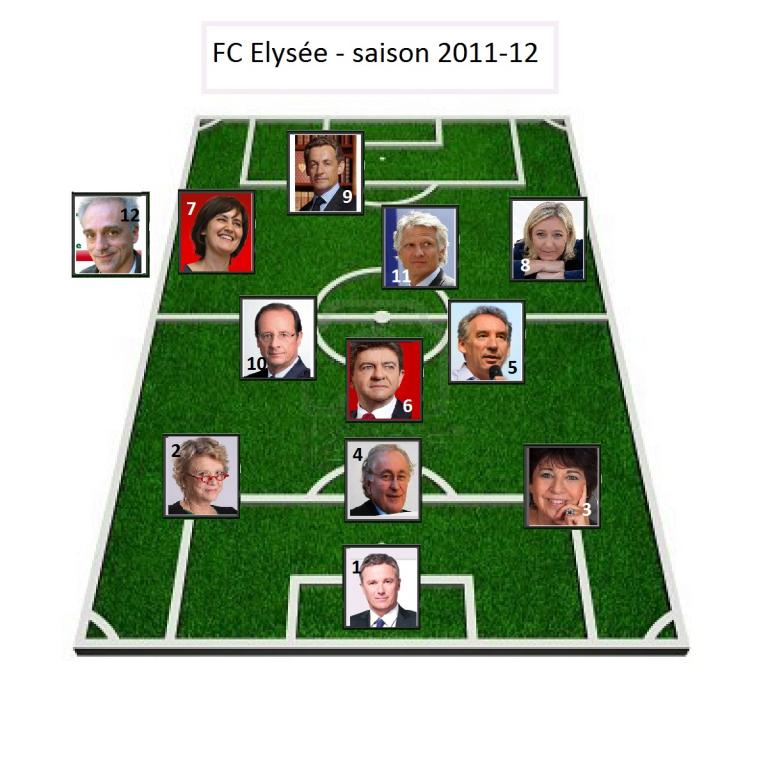 Comme tous les cinq ans, la lutte pour le capitanat du FC Elysée reprend. Pour la saison 2011-12, douze joueurs peuvent encore y prétendre. Si déjà une équipe de titulaire s’est dégagée, nombreux sont ceux qui peuvent encore espérer détrôner le capitaine sortant, le nerveux buteur en provenance du de l’UMP United, Nicolas Sarkozy.