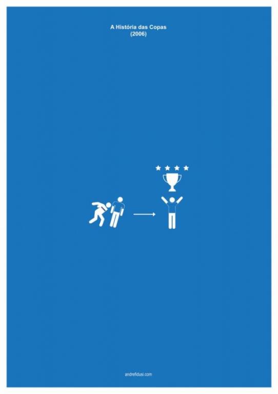 On vous recommande tout particulièrement son histoire minimaliste de la Coupe du Monde, où chaque édition est résumée en un dessin. Démonstration avec le Mondial 2006 :