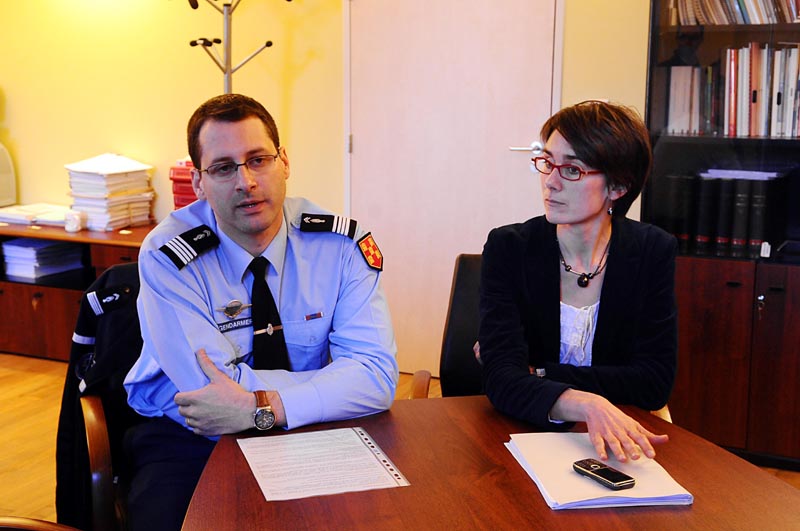 LA VICE PROCUREUR DE LA REPUBLIQUE SONIA BELLIER ET LE CHEF D ESCADRON BRUNO PERRET LORS DE LA CONFERENCE DE PRESSE AU SUJET DU DRAME DE SAINT GELAIS LE 07/02/2013.