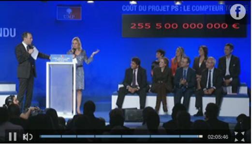 La mise en scène était soignée. Deux animateurs, la député Valérie Rosso-Debord et Nicolas Rossignol (animateur, journaliste télé, coach) jouaient du chrono et de la calculette entre leurs invités et un large compteur façon Téléthon qui augmentait au fur et à mesure que les propositions du PS ou de François Hollande étaient chiffrées : contrat de génération, emplois (aidés) d’avenir, sur la sécurité, l’énergie, les logements sociaux, bourses aux étudiants… pour arriver au montant cumulé sur 5 ans de 255,5 milliards d’euros.