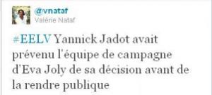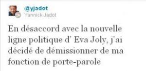 Entre temps, la candidate a perdu… son porte-parole. Yannick Jadot balance sa démission. Sur son compte twitter lui aussi.