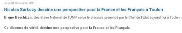 Même pas à l’UMP, qui écrit sur son site (celui où flotte la bannière « projet 2012″…)