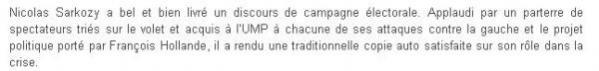 Le PS réagit sur son site au discours de Nicolas Sarkozy.