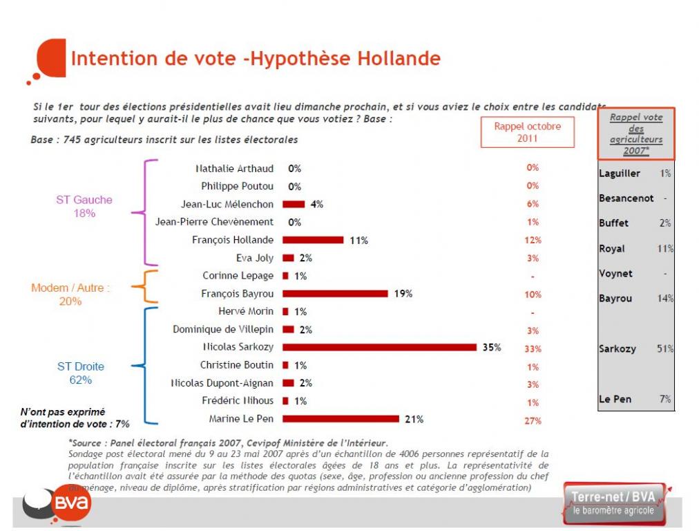 « Ce n’est pas en tapant sur le cul des vaches qu’on défend l’agriculture ». José Bové a sûrement raison. Mais pour moissonner les voix, ça peut être payant. Pour préparer leur défilé – Sarkozy samedi, Bayrou, dimanche, François Hollande mardi, Jean-Luc Mélenchon mercredi, Eva Joly jeudi et Marine Le Pen vendredi – les candidats polissent leurs bottes. Et font pain sec. Parce que dans la plus grande ferme de France, il ne suffit pas de carresser les bovins. Il faut aussi flatter les éleveurs. Et goûter quelques dizaines de spécialités. En la matière, Jacques Chirac était une bête de concours (sans mauvais jeu de mot). Cette année, il déclare forfait pour « raisons personnelles ». Mais même en l’absence du « chouchou », ces 8% de l’électorat est toujours acquis à la droite, selon une étude du Cevipof. Et penche de plus en plus vers l’extrême.