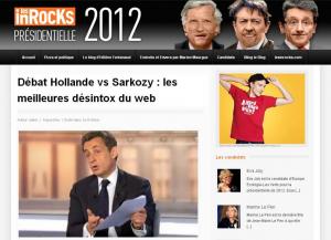 chacun peut y demander une vérification) revient en détail sur chaque déclaration. Sur la page d’accueil, sur les 18 déclarations recensées, François Hollande comptabilise une réponse fausse (sur le nombre d’emplois dans le renouvelable, 50.000 pour le candidat, 100.000 selon le Syndicat de l’énergie) pour cinq jugées vraies contre six réponses jugées vraies pour six autres déclarations jugées fausses : sur l’absence de violence durant son quinquennat, sur