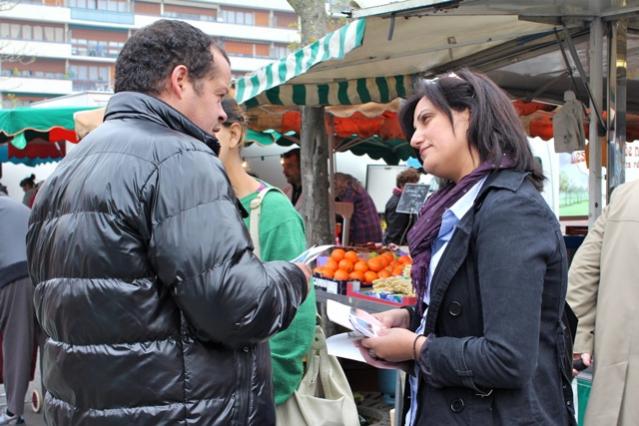 Sur le marché Saint-Paul, entre les blocs d’immeubles du quartier Sanitas, à Tours, Rachida Tassaoui, 39 ans, militante PS, tracte en parlant, parle en tractant, et… à du mal a s’arrêter. Sourire et bagou bien accroché, elle tend ses petits papiers sans se lasser. Difficile de croire que 10 ans plus tôt, elle « ne voulait pas entendre parler de politique ». Un peu comme Halim Ferraoun, 37 ans, militant au Parti radical de gauche, un « cousin de parti » attrapé en chemin. Pas par hasard : ils se croisent souvent dans les allées des « quartiers populaires ».