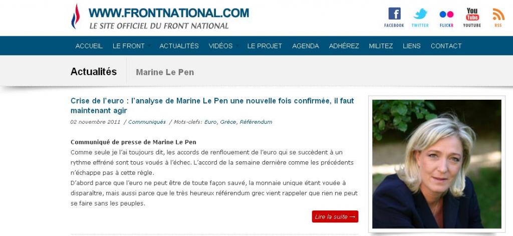 La candidate frontiste explique qu’elle n’a pas besoin de légitimer sa stature, qu’elle a notamment été classée parmi les 100 personnalités mondiales les plus influentes par le Times Magazine (en fait dans les 200 personnalités soumises au vote pour entrer dans les 100). Le grand magazine américain la décrit comme celle qui a permis au Front national d’atteindre une nouvelle popularité. Du fait de son charisme, de son parcours et de ses talents d’oratrice, Times Magazine estime qu’elle aura un vrai rôle à jouer en 2012 en dépit du fait qu’elle défende les mêmes thèmes que son père : « ordre et justice, anti-immigration, islamophobie, euro-scepticisme »…