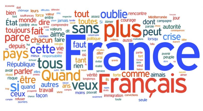 Le « candidat du peuple de France et non celui d’une petite élite » a donc parlé aux « ouvrier », aux « familles », il s’est dit conscient des « souffrances », du « chômage ». Il a parlé « prospérité », « chance », « avenir ». « Catastrophe » et « mensonges » aussi. Ceux de son adversaire, toujours pas nommé. En une heure chrono, le président-candidat a fait sa déclaration d’amour à la France… qu’il a cité 96 fois.