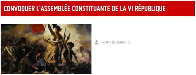 C’est le grand projet du candidat du Front de gauche : instaurer une VIe République. « Les institutions actuelles ont éloigné le pouvoir du peuple, provoquant une grave crise démocratique », justifie-t-il dans son livre-programme. Absention record, compétition personnelle lors de la présidentielle, médias « principalement voués au libéralisme » ou encore « oligarchie gouvernante » seraient le signe que les institutions actuelles sont périmées.