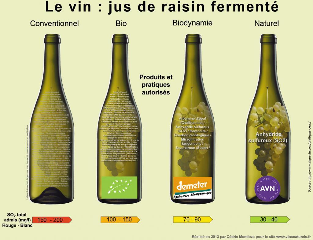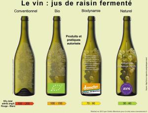 La biodynamie utilise des tisanes de plantes (ortie, prêle…) et quelques préparations spécifiques : bouse de vache décomposée dans des cornes pour enrichir le sol en bactéries et champignons, poudre de silice diluée dans l’eau et pulvérisée sur les vignes pour améliorer la photosynthèse.