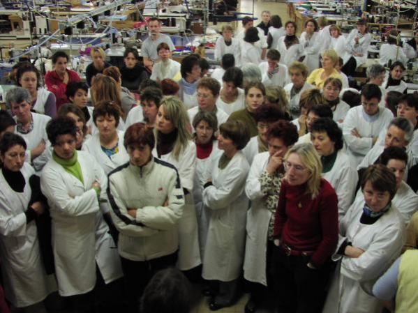 Une image m’a marqué : celle de la photo prise au milieu de l’atelier, dans les minutes mêmes où on annonce aux filles d’Amor la fermeture de leur usine. Cent soixante femmes sur le carreau. On n’y voit même pas de colère. Elles sont sonnées.