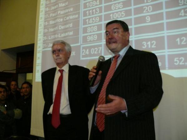Photo 1 – Abelin et Tondusson, ensemble sur l’estrade de l’ancien musée au moment de l’annonce des résultats des municipales de mars 2008.